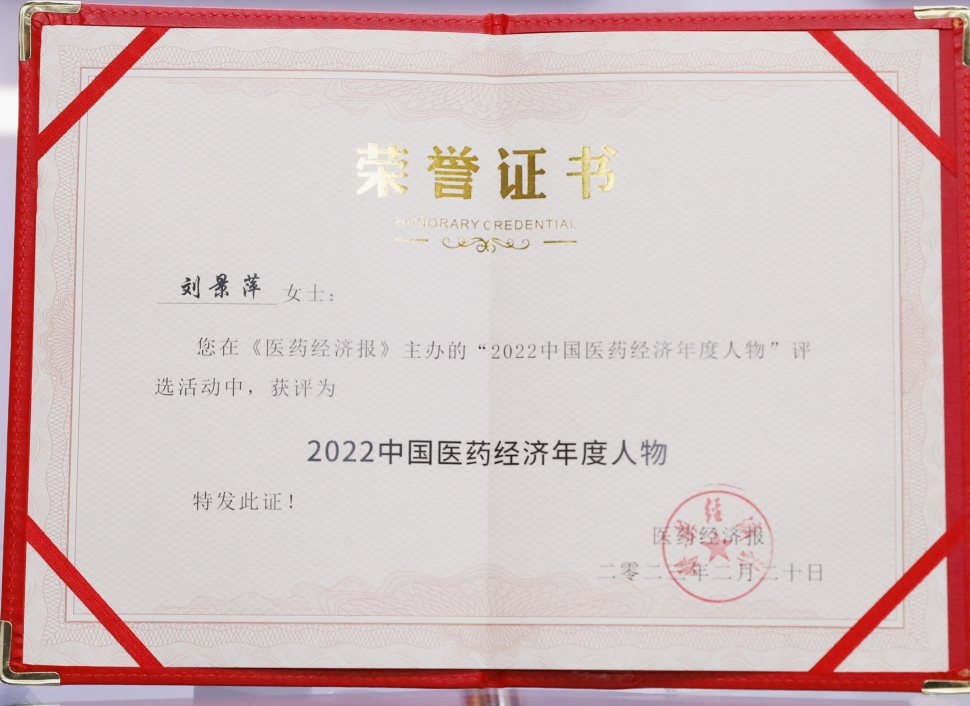 万利药业集团董事长刘景萍当选“2022中国医药经济年度人物”