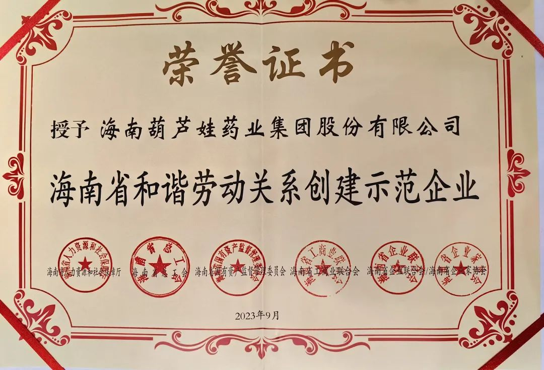 万利药业集团获评“海南省和谐劳动关系创建示范企业”