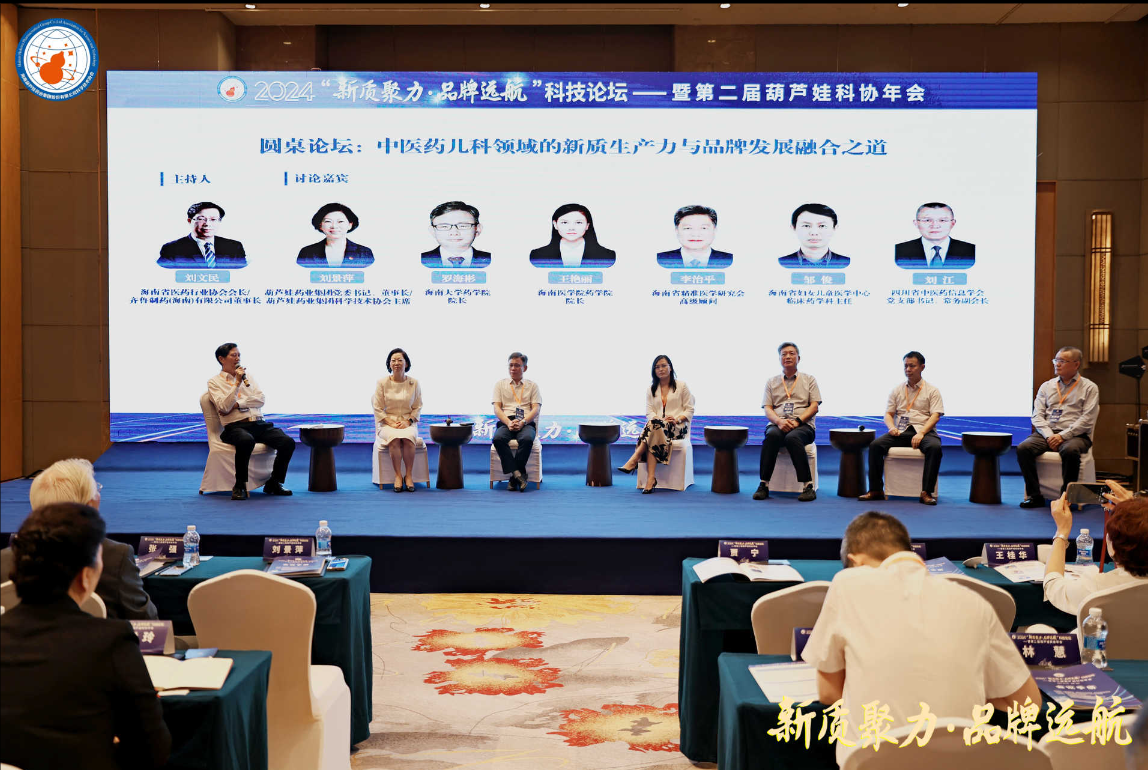 万利药业集团党委书记、董事长刘景萍,海南大学药学院院长罗海彬、海南医学院药学院院长王艳丽、海南省精准医学研究会高级顾问李治平、海南省妇女儿童医学中心临床药学科主任邹俊,四川省中医药信息学会党委书记、常务副会长刘江等,在主题为“中医药儿科领域的新质生产力与品牌发展融合之道”的圆桌论坛中积极献策。海南省医药行业协会会长、齐鲁制药(海南)有限公司董事长刘文民主持论坛。